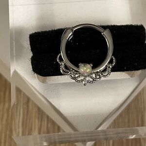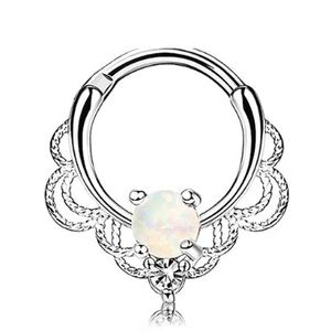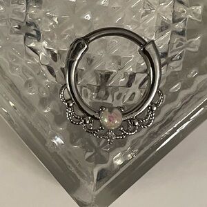 16G Opal & CZ Surgical Steel 10mm Single Hoop Septum/ Daith Clicker NWT