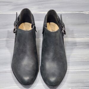 Clarks Adreena Field Booties Black Leather 6M Zip Up Ankle Booties Buckle Detail