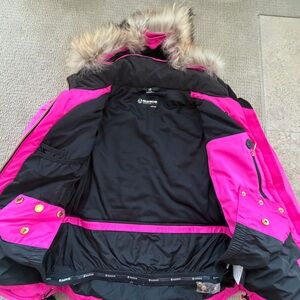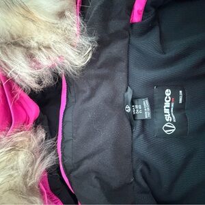 Vibrant pink puffer jacket by Sunice. Features stylish real fur trim. Ideal for warmth and style. NILS Ski Pant