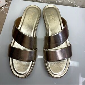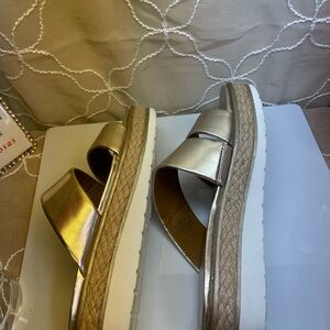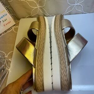 (P3) Franco Sarto gold leather platform sandals, women's size 8