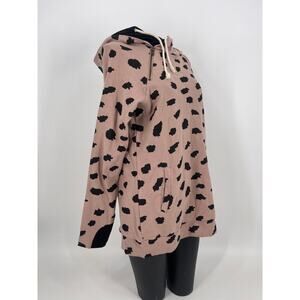 Light brown and black dot printed pullover hoodie. Double lined hood for maximum warmth. Drawstrings are on the side. Front pocket. Small black detailing on the back of the arms. Arm- 21 in bottom- 19 in Chest- 20 in Hood- 12 in Length- 39 in