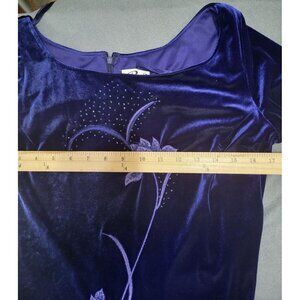 Absolutely stunning velvet dress! Has embroidered flowers and beads on front. Long length with short sleeves and zips up the back.