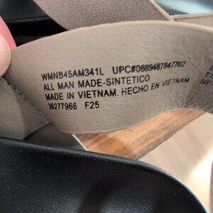 The product is a pair of women's sandals from No Boundaries in size 6. These cross-strap sandals feature a toe loop and buckle closure, making them stylish and easy to wear. The taupe color adds a versatile touch, while the straps provide additional support for a comfortable fit. Made in Vietnam, these sandals are perfect for both casual and dressy occasions, with a trendy cross-strap design that adds a fashionable flair to any outfit.