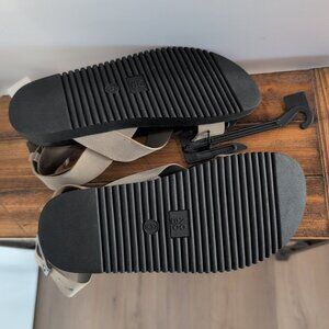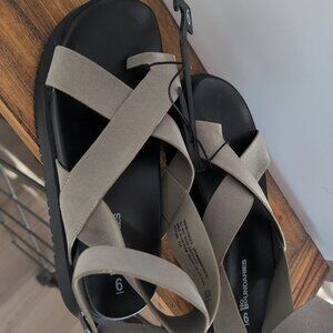 NWT No Boundaries Size 6 Women's Cross-strap Toe Loop Taupe Sandles