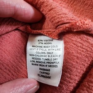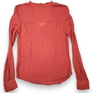 Hinge V-Neck Long Sleeve Blouse Ruffle Tie Neck Salmon Pink Size Small