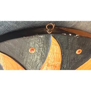 This vintage wood decor piece features a round shape with a celestial theme, perfect for adding a touch of mid-century modern style to any room. Hand-painted in multicolor, this 11" piece is ideal for teens, adults, and kids alike. The unique design of the moon, sun, and stars adds a whimsical and unique touch to spaces like the bedroom, living room, or entryway. This Y2K piece captures the era of late 20th to early 2000's aesthetics and is a charming addition to any home decor collection.