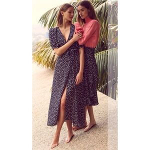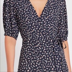 MISA Los Angeles | Andrea Wrap Dress Resort Petals Puff Sleeve NEW Size M
