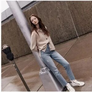 With their waist-accentuating high rise and tapered legs, these are "mom jeans"...if your mom was a '90s supermodel. A light wash and a touch of distressing makes 'em look perfectly well-loved.
