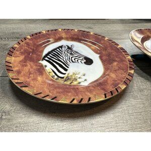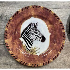 Lynn Chase African Portraits Zebra Plate Lot of 2 Luncheon Salad 9" Vintage NWOT