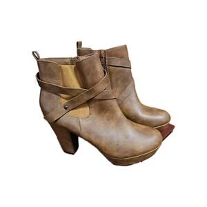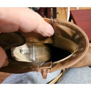Dominique Nicole Size 9.5 Medium Brown Ankle Boots Saundra Style Stacked Heels