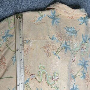 Tommy Bahama Shirt Mens Large Silk Peach Dragon Loop Collar Palm Trees Party L