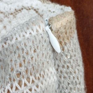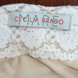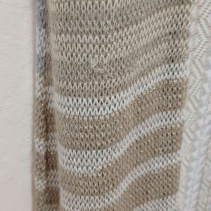 Cecilia Prada Metallic Glinted Knit Maxi Skirt. Size Small. Neutral Cream, Tan and White Knit with slight silver shimmer. Elastic waistband. 55% viscose, 21% acrylic, 21% polyamide, and 3% metallic. Lining is 100% polyester.