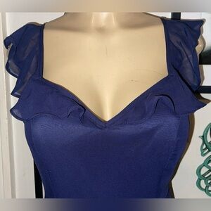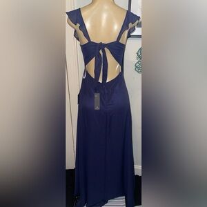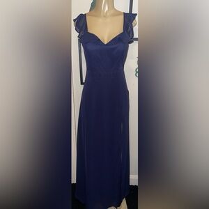 Lulus navy maxi dress, Lulus ruffle maxi dress, Lulus chiffon dress, Lulus tie-back maxi dress, Lulus wedding guest dress, Lulus bridesmaid dress, navy blue formal dress, Lulus Sweetest Entrance dress, navy evening gown, ruffled tie-back maxi dress, Lulus size small NWT