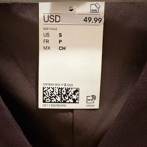 New with tags, never worn. Women’s size small. This elegant brown sleeveless dress features a sleek design with gold button accents. Perfect for any occasion, it offers a sophisticated look with its rich brown color.