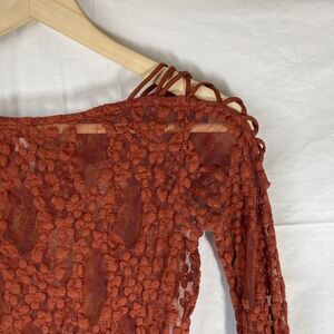 Intimately Free People Burnt Orange Lace Top Lattice Tie Sleeves Sz XS