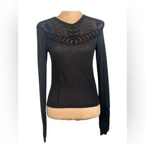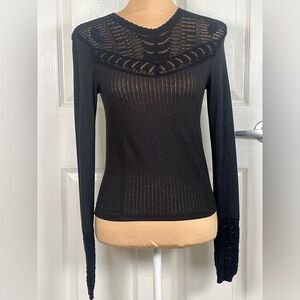 Free People Colette Scallop Neck Trim Knit Sweater Size XS
