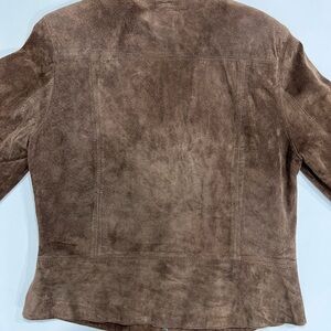 Elegant brown suede jacket with a front zipper. Ideal for a sophisticated style.