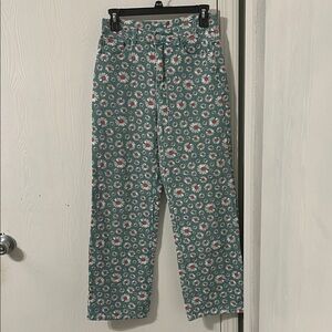 Cider Teal Green Floral Straight Leg Denim Jeans Size Small