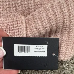 Charming blush pink knit hat with a stylish bow. Perfect for adding elegance to outfit! Crafted by Kate Spade.