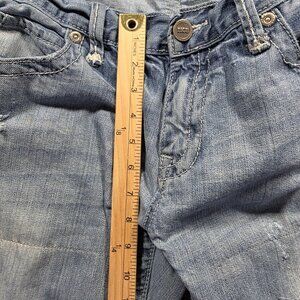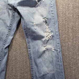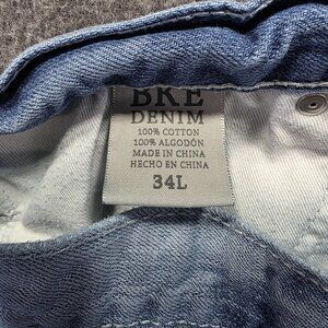 BKE Carter Jeans Mens 34L Blue Light Wash Distressed Straight Leg Patchwork