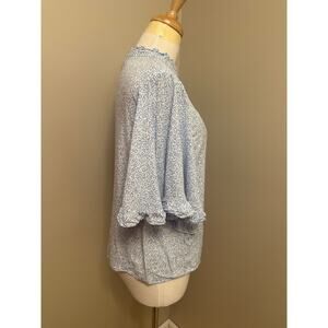 Maeve x Anthropologie Aveiro Flutter-Sleeved Buttondown Blue Motif Sz Medium
