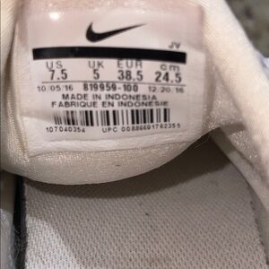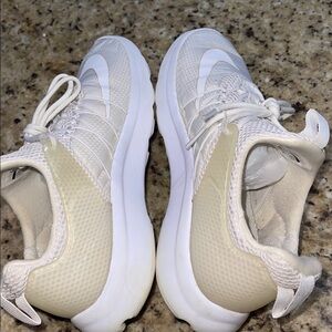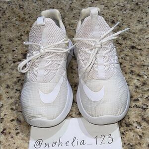 Stylish white Nike sneakers with a sleek design. Perfect for casual wear.