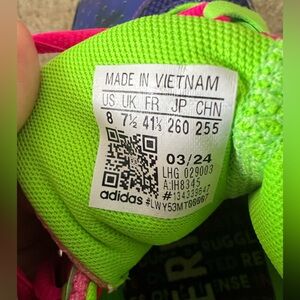 Adidas multicolor neon 90s vibe tie dye rainbow green purple pink determination DON issue 5 lace up sneaker. Feels like Men size 8, women size 9. EUC