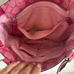 Coach Y2K Chelsea Heritage Stripe Tote Pink/White Genuine