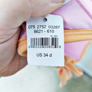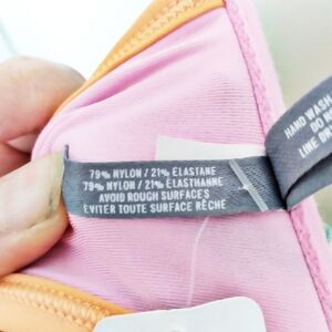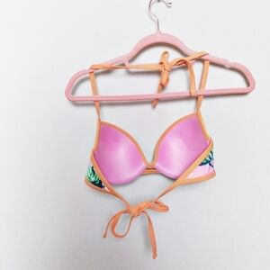 aerie Brooke Pink and Orange Tropical Print Push Up Halter Bikini Top Size 34D