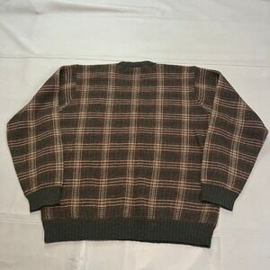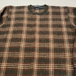 VTG Polo Ralph Lauren Men XL Plaid Check Crew Neck Sweater 100% Wool Brown-4532