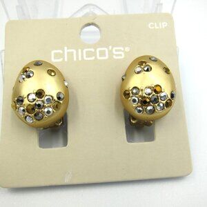 Chico's Neutral Glisten Gold Clip-On Earrings NWT Contemporary Day Evening