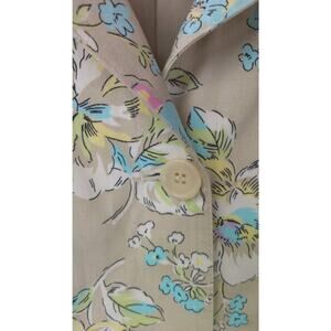 Oscar de la Renta Tan Watercolor Pink Blue Flowers Jacket Blazer sz 8