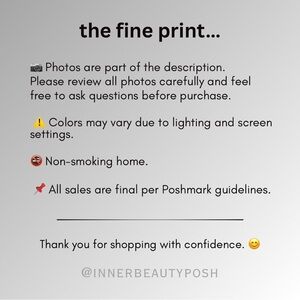 ๐ญ Nonsmoking home.โPlease ask questions prior to purchasing. All sales are final. ๐