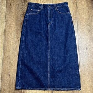 Goldsign Low Slung Dark Wash Midi Skirt Size 26