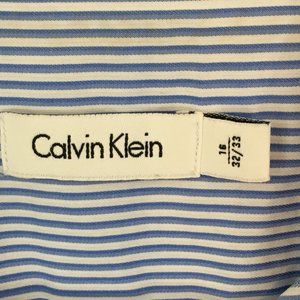 Calvin Klein Mens Blue White Pin Striped Dress Shirt, Button Front 16 32/33