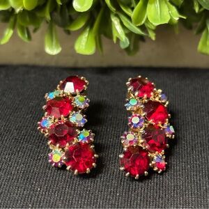 Vintage Kramer Ruby Red Rhinestone Clip On Earrings: 1950s Jewelry in beautiful condition