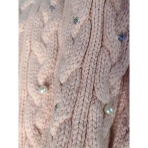 Guess Pink Cable Knit Scarf Faux Fur Pom Poms Pearl Rhinestone Embellished
