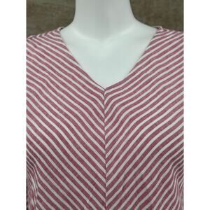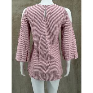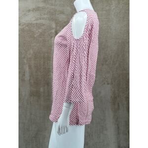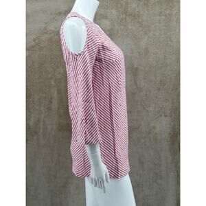 Soft Surroundings Top Womens XS Red White Stripe Cold Shoulder Tunic Linen Blend V-Neck 3/4 Sleeves Pullover Summer Breathable Lightweight Travel Beachy