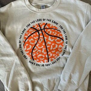 Cream crewneck with bold orange basketball graphic. "for the love of the game". Perfect forbasketball players and supporters!