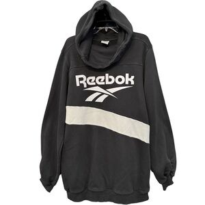 Reebok Classic Black Hoodie XL Spell Out Logo Kangaroo Pocket
