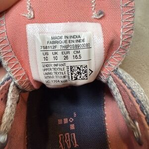 The product is a pair of little girl's Converse Chuck Taylor All Star shoes in size 10, featuring a low top style with a blue and pink color scheme. These athletic shoes are designed with glitter accents on the double tongue, giving them a stylish and classic look. Made of fabric with a durable canvas lining, these shoes are perfect for all seasons and are ideal for young girls who love the iconic Converse brand.