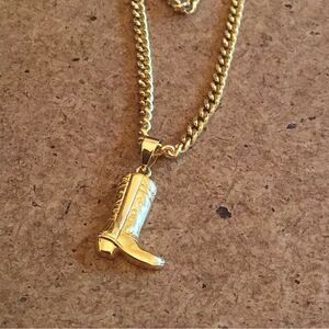 Elegant gold boot pendant necklace perfect for adding a touch of charm to any outfit.