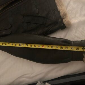 Stay warm and stylish with this luxurious black shearling jacket. Perfect for any occasion. Good condition as seen in the pictures. It could fit Medium especially if you like to wear sweaters underneath or pass for a large if don’t like the bulk