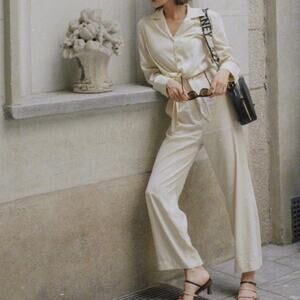 Nanushka Tanya Jumpsuit Size Small Long Sleeve Cut Out Tie Front Cream