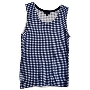 Talbots Cardigan Sweater Top 2 Pc SET Petite P 3/4 Sleeves Blue White Checkered