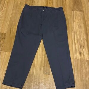 Stylish gray cropped pants paired with a floral print top; cotton/spandex blend; pants are size 16; top is XL; Perfect for versatile wear.