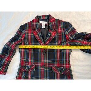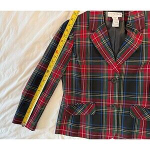 Classic vintage tartan plaid blazer from Sag Harbor, dating to the late 1990s–early 2000s. Featuring a tailored petite fit, rich red, green, navy, and yellow plaid, and a timeless preppy silhouette that works beautifully for holiday wear, academia style, or elevated everyday outfits.