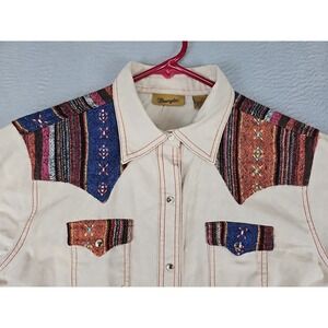 Wrangler Aztec Pearl Snap Button Up Shirt Womens Medium Cream South Western Yoke
