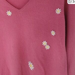 Renewist Cashmere Raspberry Pink DaisySweater – Upcycled from Marblehead