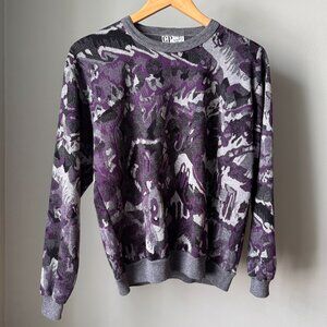 Women's Sweater with Abstract pattern in gray, purple and black colors. Estimated to fit size Medium/8.